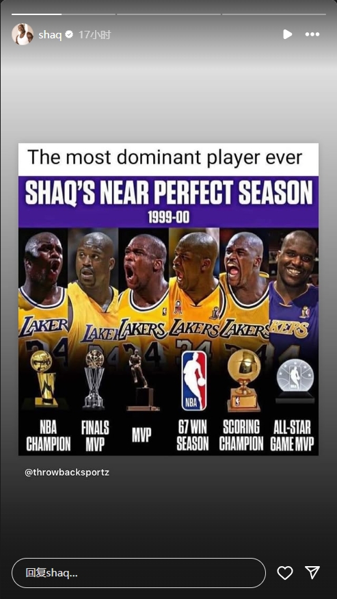 02月28日訊 今日,奧尼爾更新社媒曬出了歷史最具統(tǒng)治力的單賽季表現(xiàn)。