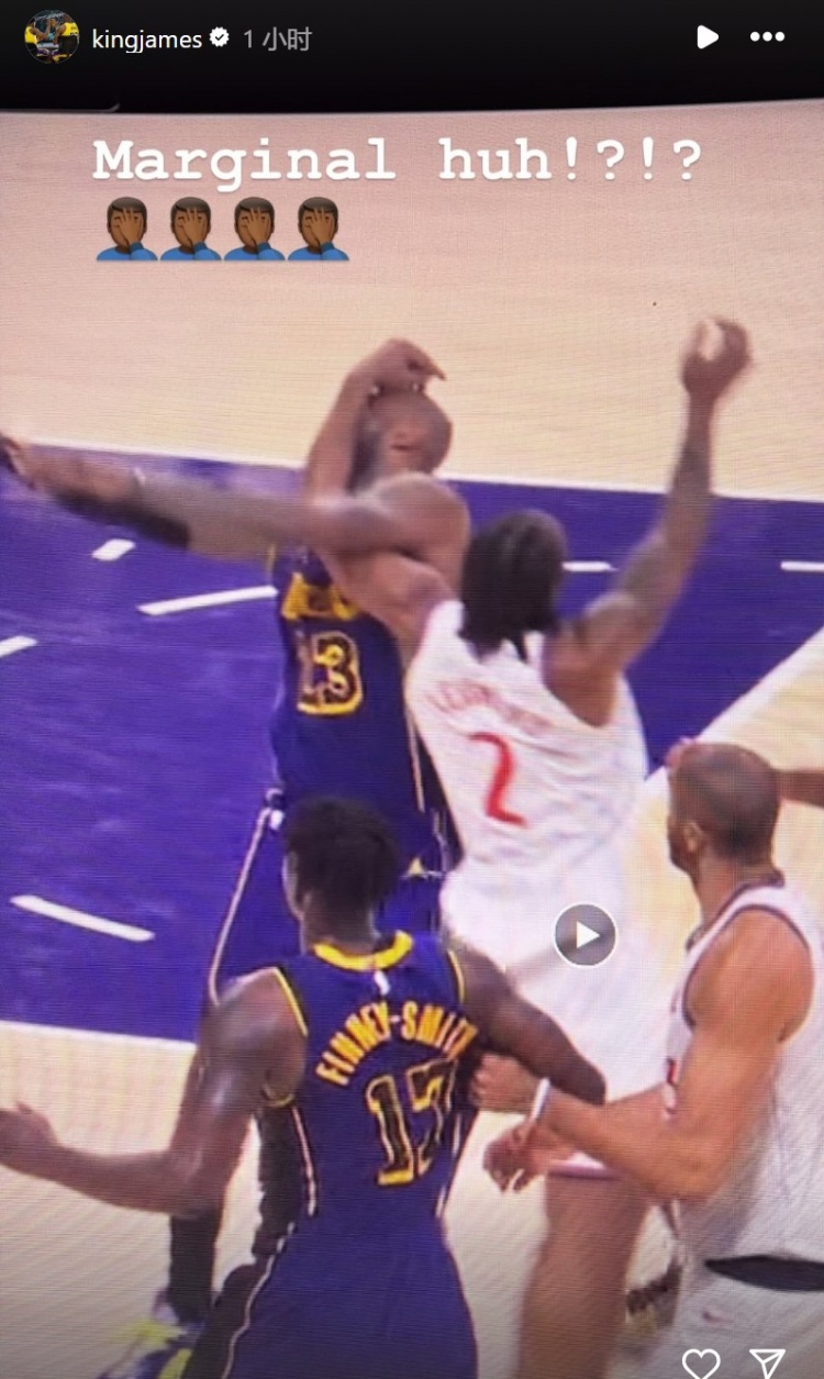 賽后,詹姆斯轉發(fā)了這個瞬間的照片,并寫道:“輕微接觸啊???????????????????!!”