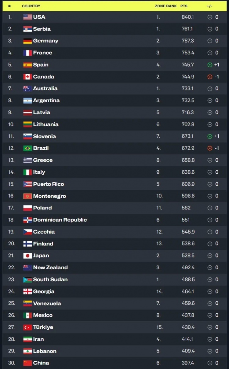 要說(shuō)贏家的話,當(dāng)屬2018年歐洲杯中表現(xiàn)出色的斯洛文尼亞、意大利、拉脫維亞等多支球隊(duì)了。新榜單開(kāi)始正視歐洲籃球整體水平在世界籃壇的領(lǐng)先地位,前30名中光是來(lái)自歐洲的就有18家,比起舊版這無(wú)疑更符合主流的觀點(diǎn)印象。