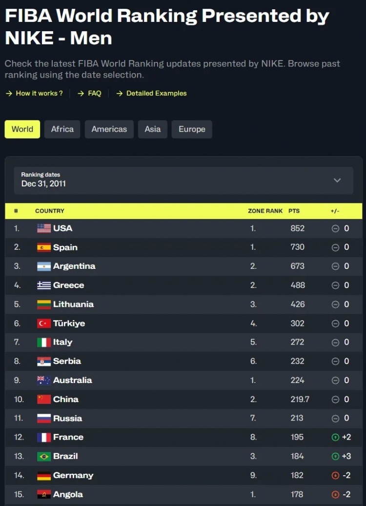 相對(duì)而言,國(guó)際籃聯(lián)FIBA對(duì)于世界排名的計(jì)算就不太被關(guān)注了,不僅在于它的算法更為繁瑣和復(fù)雜,更在于一直以來(lái)都頗有幾分神秘色彩。