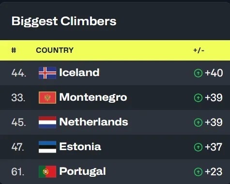 2023年9月,克羅地亞再掉五個(gè)名次,排名正式落到中國(guó)身后,他們?cè)谀莻€(gè)被新納入統(tǒng)計(jì)的窗口期合計(jì)輸給瑞典荷蘭烏克蘭55分,令人無(wú)語(yǔ)。