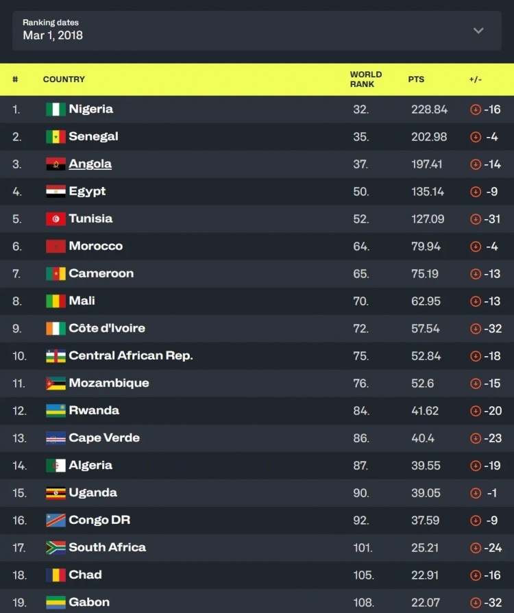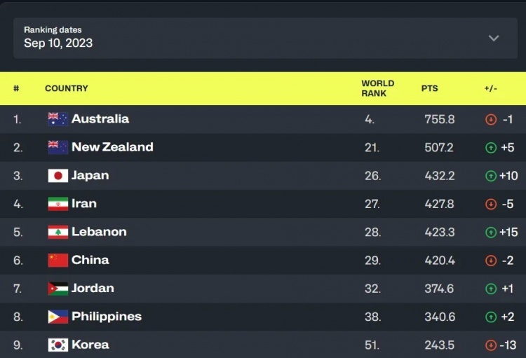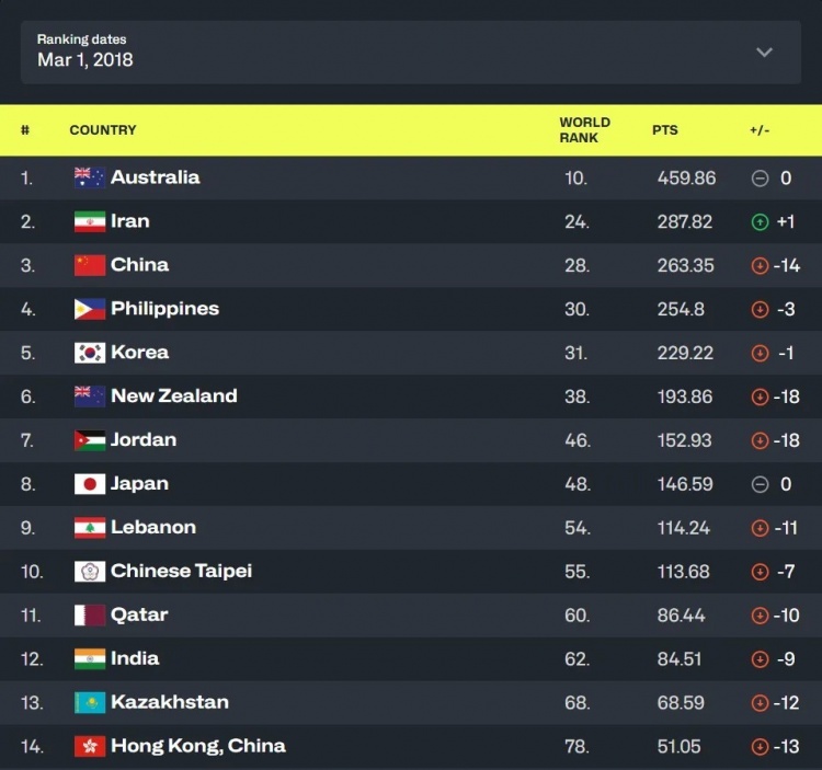 這里可以看到,中國(guó)隊(duì)俯沖掉了14名,同樣俯沖的還有非洲區(qū)第一第二尼日利亞和安哥拉,以及大洋洲千年老二新西蘭