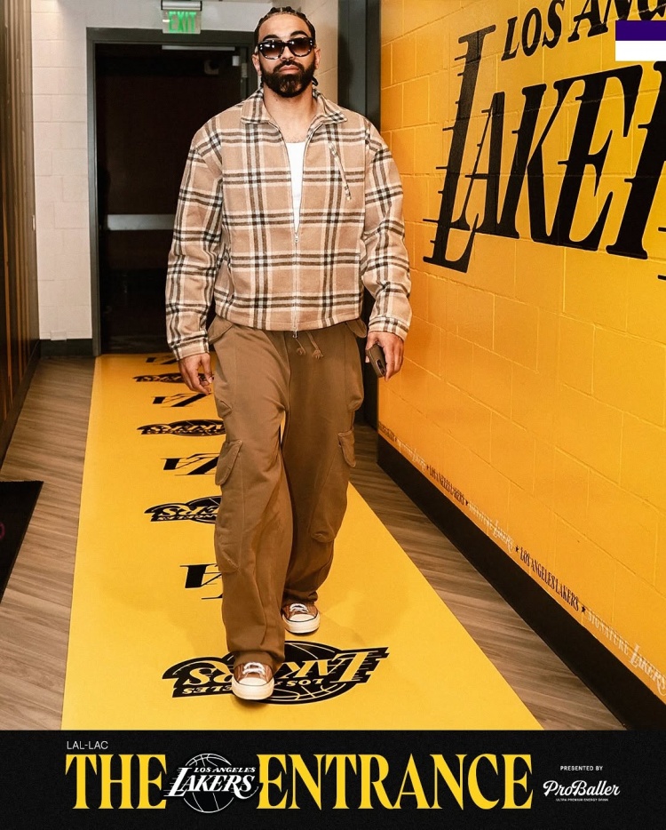 湖人眾將入場穿搭:老詹短褲+拖鞋 文總墨鏡+格子衫 克內(nèi)克特干練