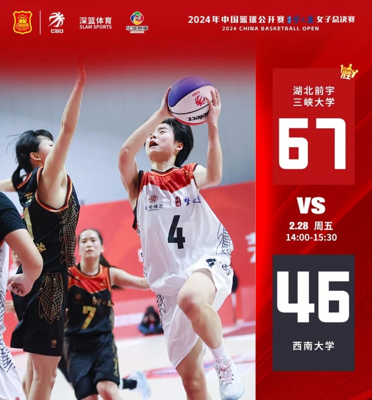2月28日,2024年中國(guó)籃球公開賽洋河夢(mèng)之藍(lán)女子總決賽進(jìn)入到第四個(gè)比賽日。在本輪中,湖北前宇三峽大學(xué)、云南隊(duì)、湖南師范大學(xué)獲勝。