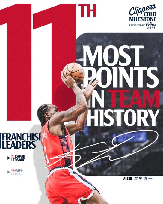 里程碑!萊昂納德快船生涯總得分超越喬治 躋身隊(duì)史第11位