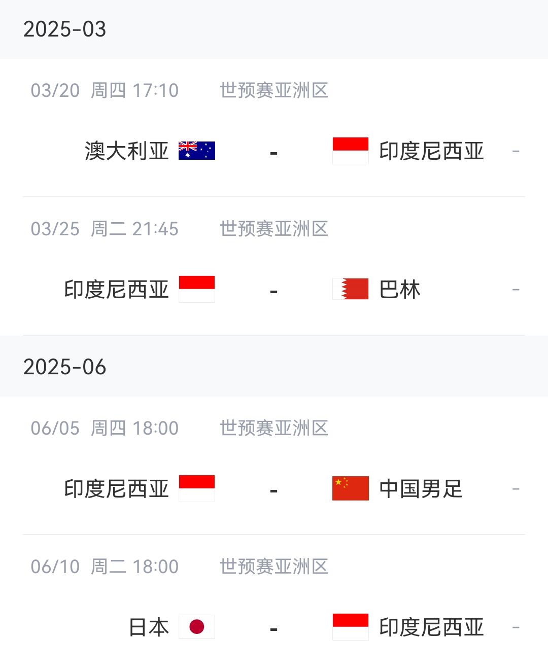印尼剩余賽程↓