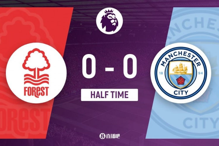 上半場比賽結(jié)束,曼城0-0諾丁漢森林。