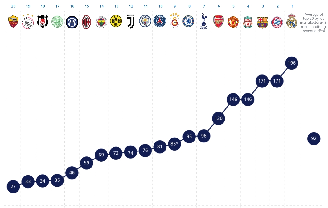 03月08日訊 根據(jù)歐足聯(lián)最新的財務(wù)報告顯示,皇馬去年以1.96億歐創(chuàng)下了球衣和商品銷售收入的新世界紀(jì)錄。