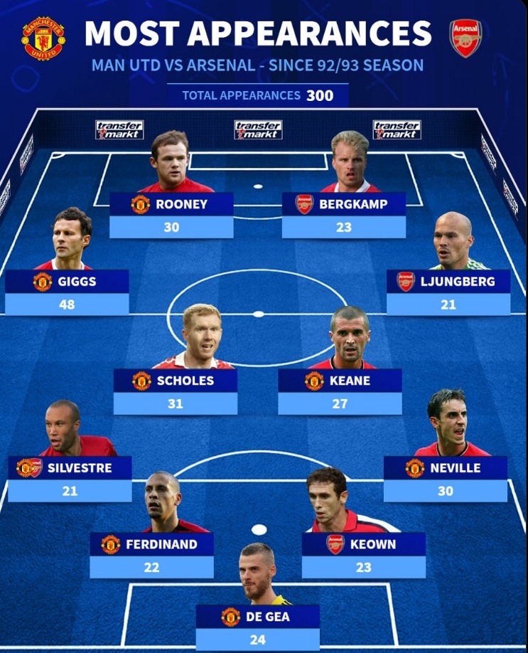 3月9日訊 本輪英超將迎來阿森納與曼聯(lián)的焦點(diǎn)之戰(zhàn),轉(zhuǎn)會(huì)市場也盤點(diǎn)了英超時(shí)代出戰(zhàn)曼聯(lián)vs阿森納比賽最多的球員陣容,吉格斯、魯尼、博格坎普等眾球星在列,具體陣容如下: