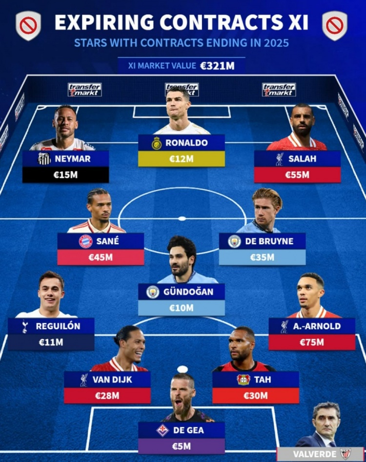 德轉(zhuǎn)列今年合同到期球星陣:C羅、薩拉赫、內(nèi)馬爾、范迪克在列