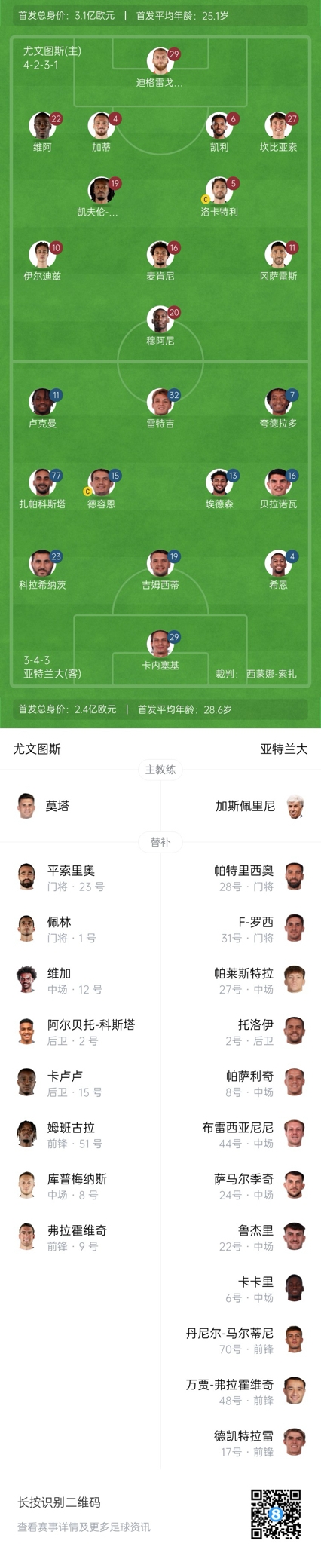 03月10日訊 意甲第28輪,尤文圖斯主場迎戰(zhàn)亞特蘭大,賽前首發(fā)名單公布。