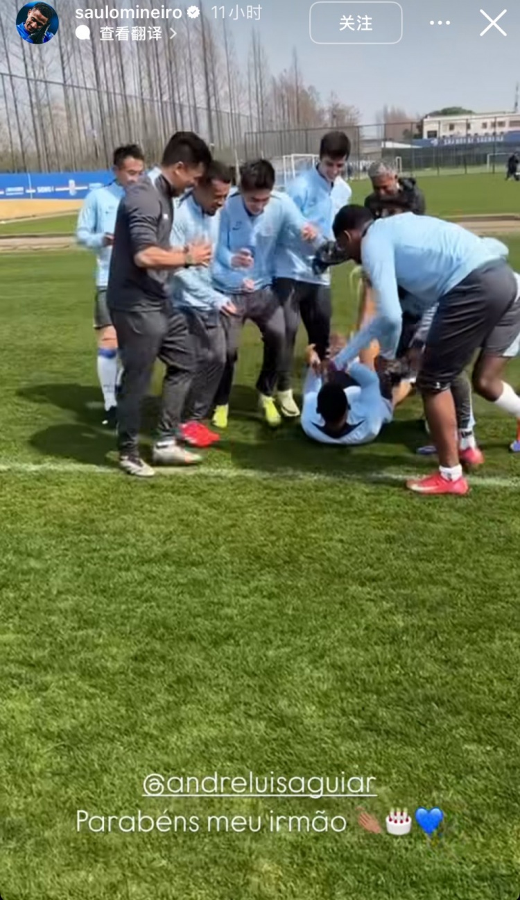3月10日訊 昨天是申花外援安德烈-路易斯的31歲生日。另一名申花外援米內(nèi)羅更新社媒,曬出球隊在訓練時為路易斯慶祝的視頻。