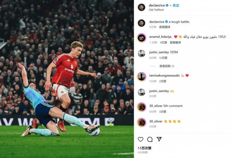 打進扳平球!賴斯社媒曬搶斷霍伊倫瞬間照:一場艱難的戰(zhàn)斗