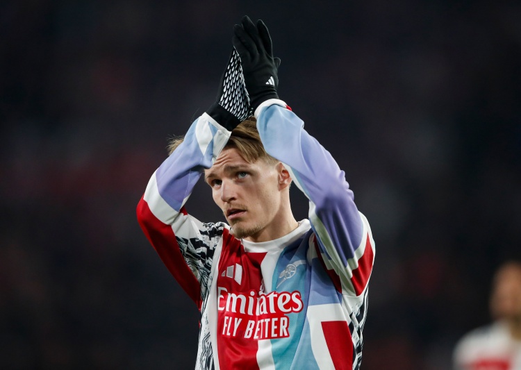 英超第28輪,阿森納客場(chǎng)1-1戰(zhàn)平曼聯(lián)。厄德高本場(chǎng)比賽首發(fā)踢滿全場(chǎng),發(fā)揮糟糕。