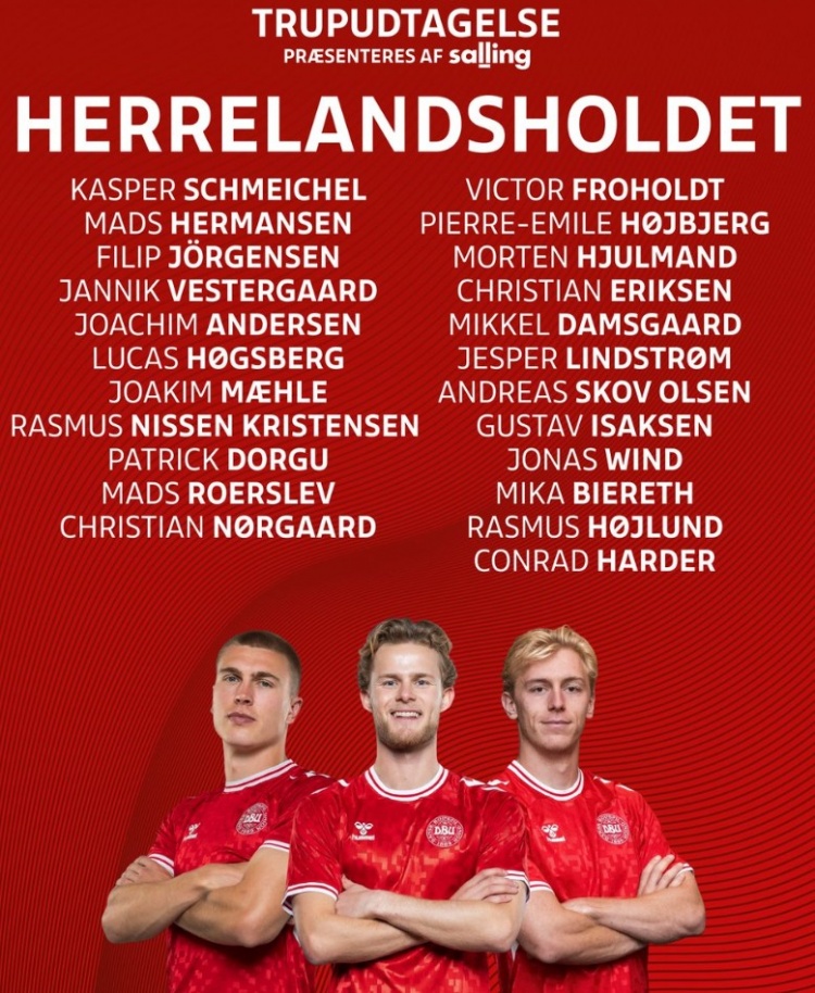 3月11日訊 今天,丹麥足協(xié)在官方社媒公布了新一期國家隊(duì)球員名單,霍伊倫領(lǐng)銜,小舒梅切爾、埃里克森在列