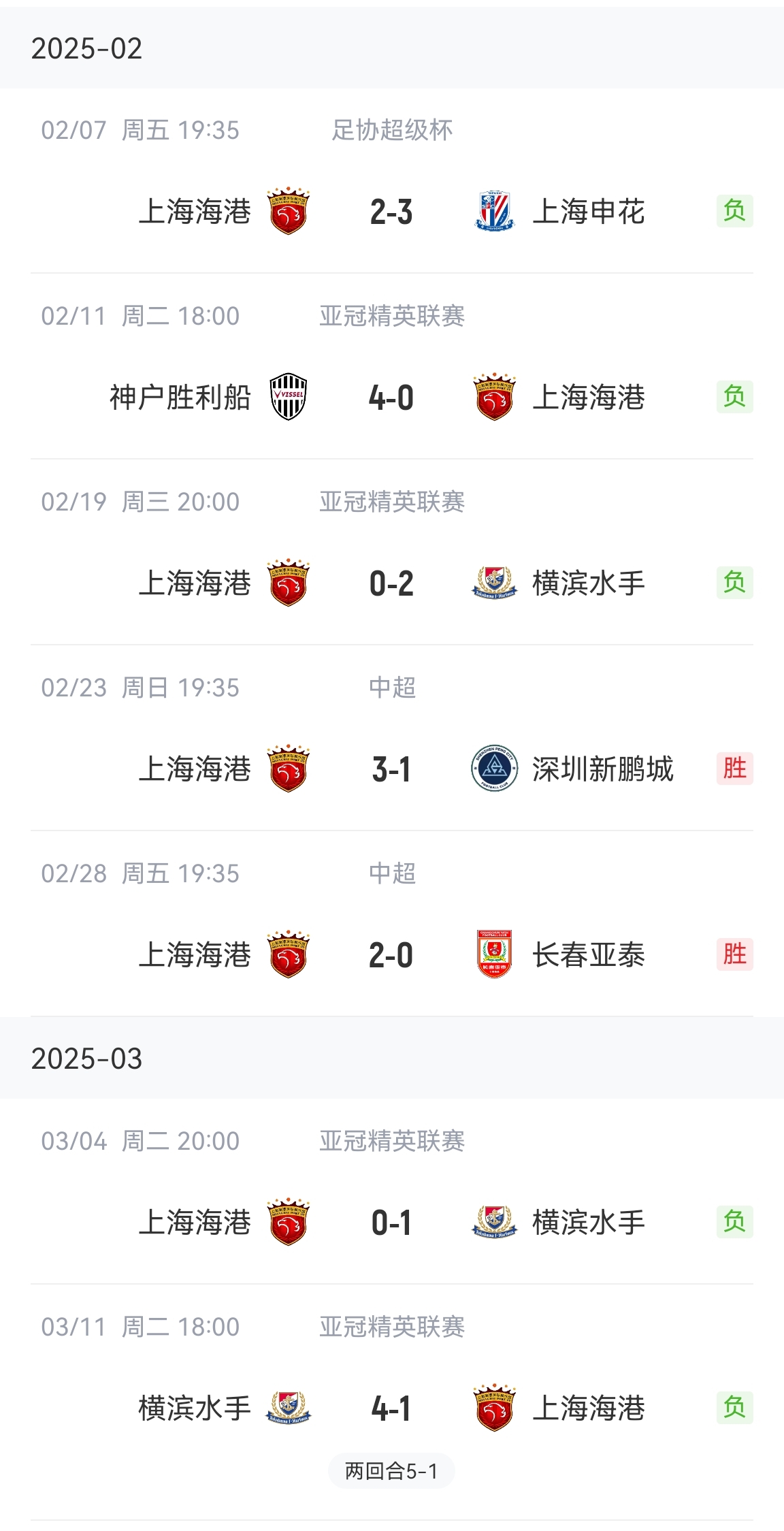 03月11日訊 海港1-4橫濱總分1-5無緣亞冠八強,這場比賽是海港2025年的第5場敗仗,這一數(shù)據(jù)已經(jīng)追平了2024全年。