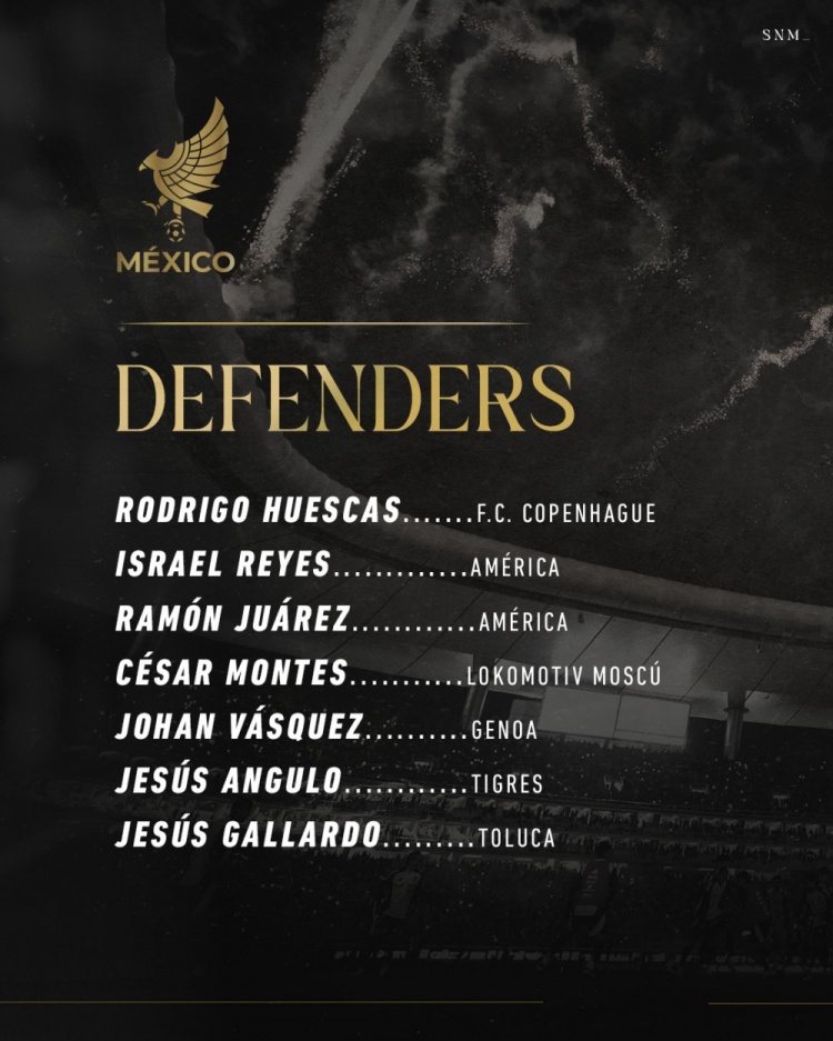 前鋒:圣地亞哥-希門尼斯(米蘭)、貝加(托盧卡)、勞爾-希門尼斯(富勒姆)、奎尼奧內斯(卡迪西亞)、阿爾瓦拉多(瓜達拉哈拉)、韋爾塔(安德萊赫特)、埃弗林-阿爾瓦雷斯(蒂華納)