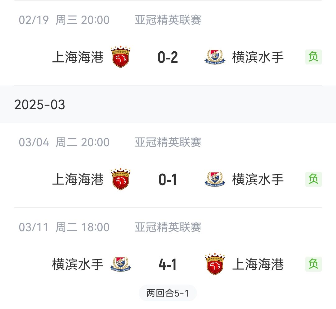 近期,上海海港已經(jīng)遭橫濱水手三殺,在聯(lián)賽階段末輪,上海海港主場0-2不敵橫濱,隨后又在16強(qiáng)中0-1、1-4輸球。