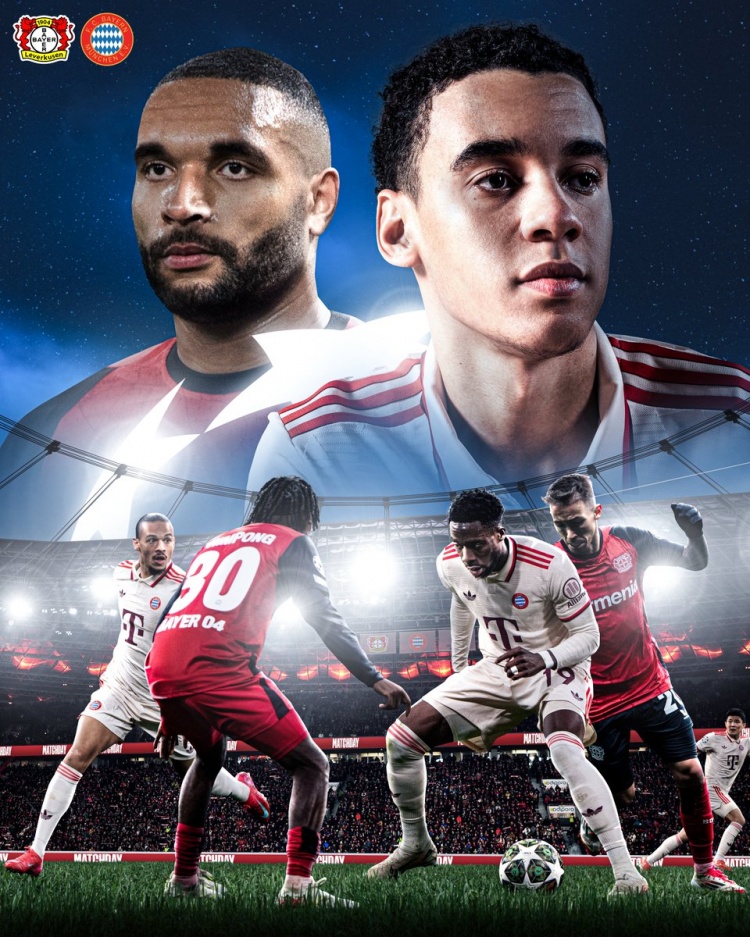 首回合3-0取勝!拜仁發(fā)布戰(zhàn)勒沃庫森海報:穆西亞拉對決若納坦-塔