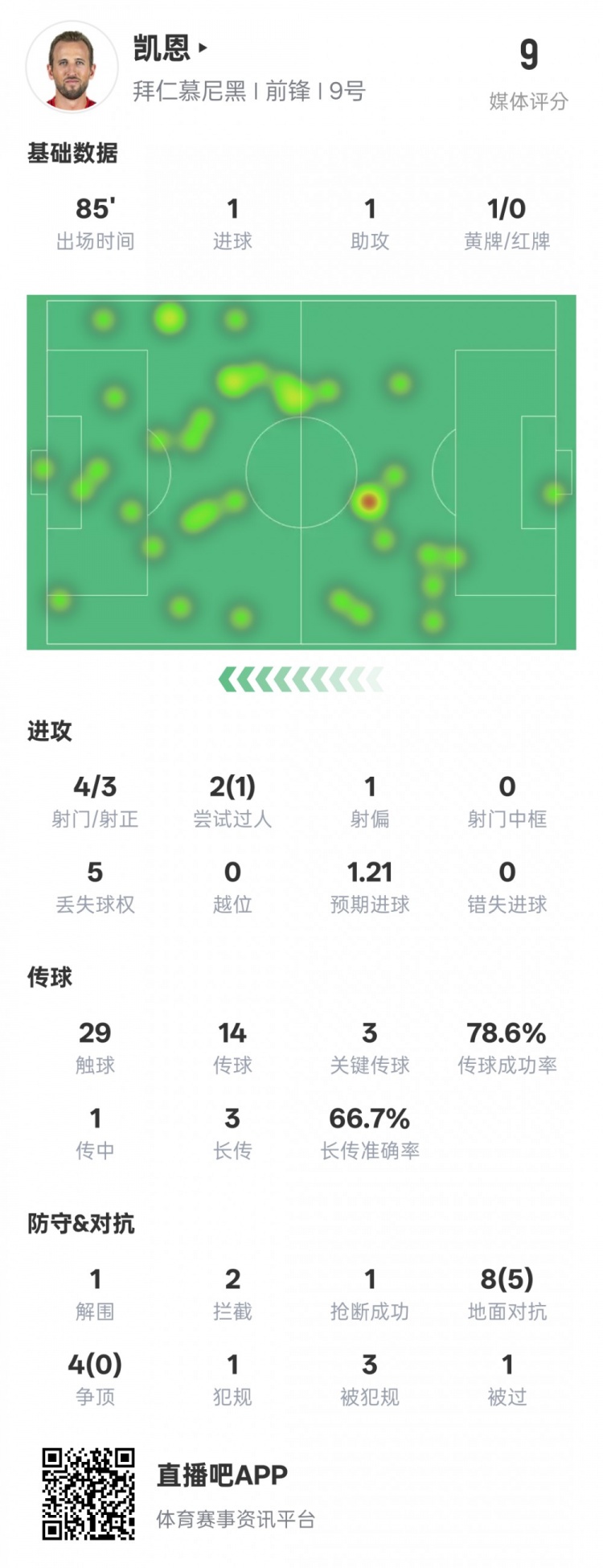 3月12日訊 歐冠1/8決賽次回合,拜仁客戰(zhàn)勒沃庫森,凱恩首發(fā)出戰(zhàn),傳射建功,還送出3次關(guān)鍵傳球,1次過人成功,評分9.0。