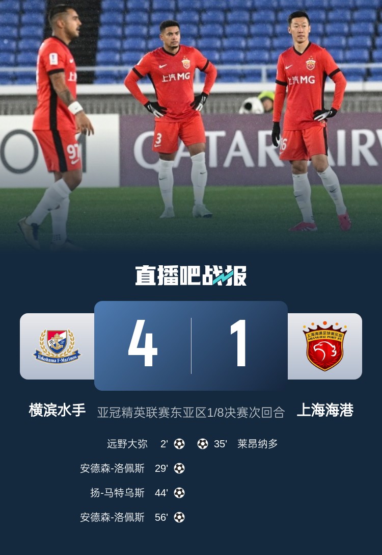 03月12日訊 亞冠精英聯(lián)賽東亞區(qū)1/8決賽次回合,上海海港客場1-4慘敗橫濱水手,兩回合1-5被淘汰。