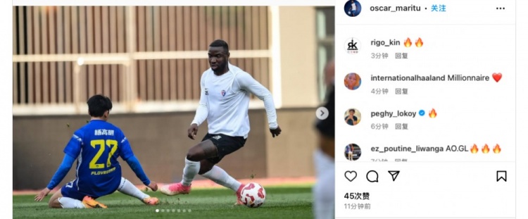 奧斯卡今日在社媒曬照,顯示自己正隨玉昆參加訓(xùn)練