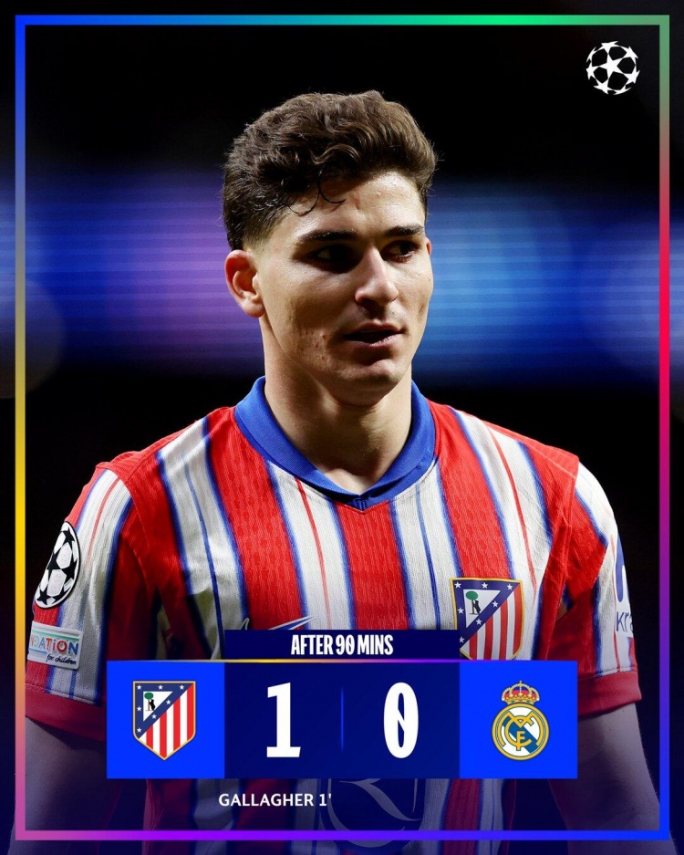 第1分鐘,馬競(jìng)反擊,德保羅分邊,西蒙尼右路傳中,前點(diǎn)一漏,加拉格爾門(mén)前鏟射破門(mén),馬競(jìng)?cè)〉脡?mèng)幻開(kāi)局,1-0!↓