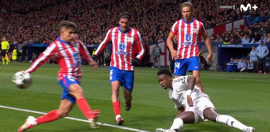 03月13日訊 皇馬vs馬競上半場,維尼修斯倒地傳中被朱利亞諾-西蒙尼用手擋出,皇馬球員申訴對方手球,但主裁判馬齊尼亞克明確表示不是犯規(guī),VAR也沒有介入。