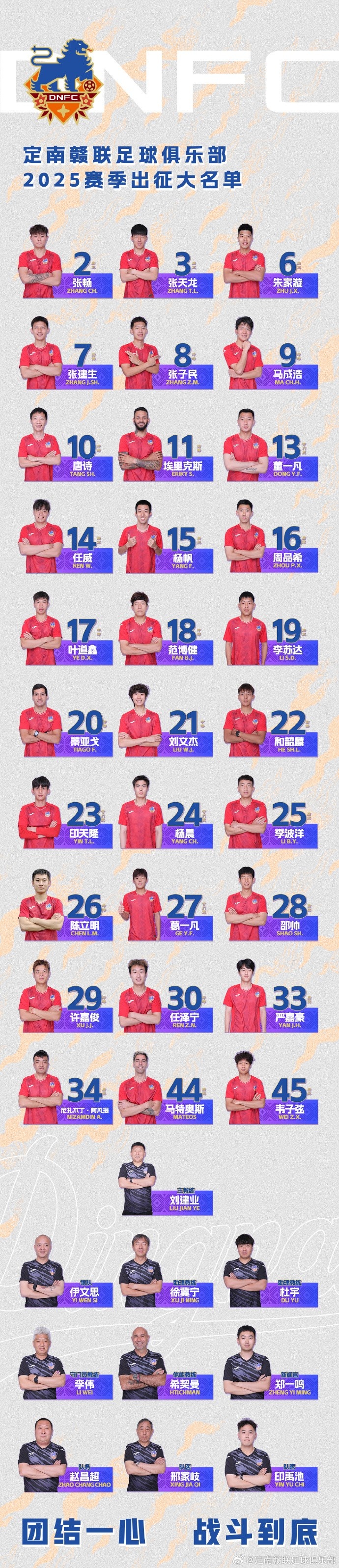 定南贛聯(lián)新賽季一線隊名單:三外援領銜&共30人入選,唐詩10號