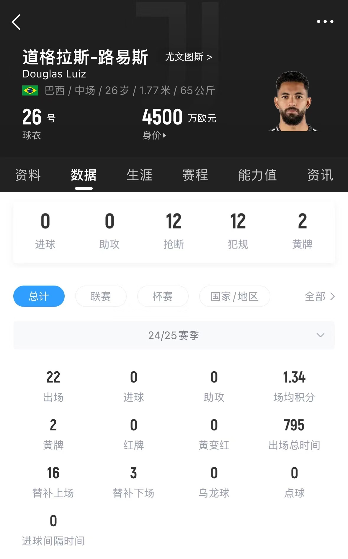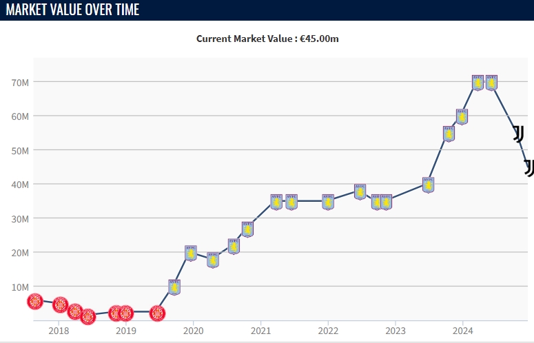 尤文在去年夏天花費(fèi)5150萬歐元從維拉引進(jìn)這名中場,本賽季他為尤文出戰(zhàn)22場比賽,沒有取得進(jìn)球和助攻。值得一提的是,在加盟尤文以后,他的德轉(zhuǎn)身價(jià)已由原先的7000萬歐元,跌至目前的4500萬歐元。