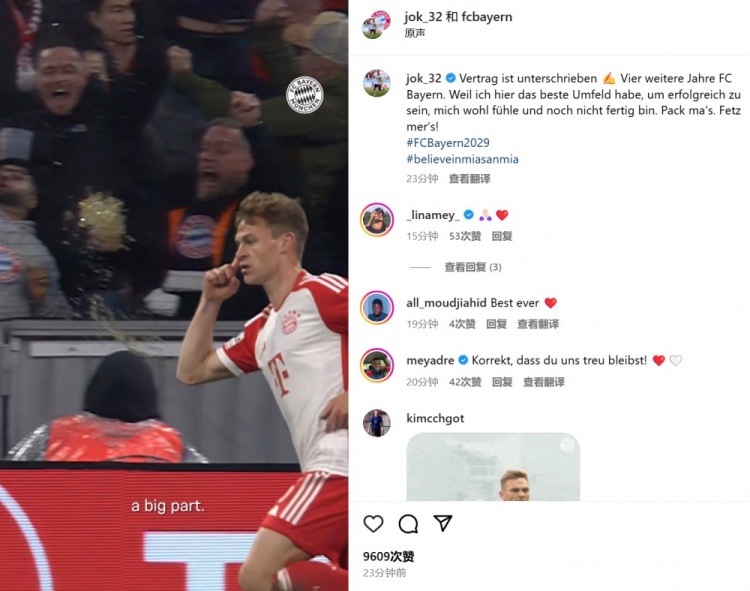 基米希轉(zhuǎn)發(fā)了拜仁的官宣視頻,并配文:“合同已簽署??我將在拜仁再戰(zhàn)4年。因?yàn)檫@里有我取得成功的最佳環(huán)境,我在這里過(guò)得很舒服,并且還有任務(wù)尚未完成。讓我們開(kāi)始為之努力吧!”