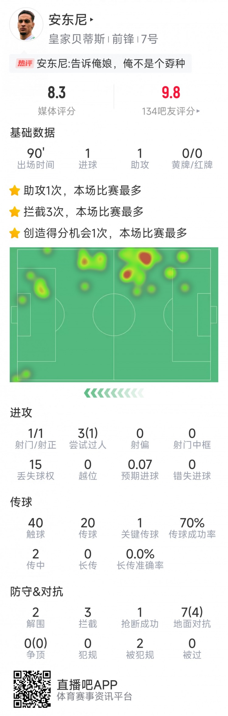再度閃耀!安東尼本場數(shù)據(jù):傳射建功,1次射門即破門,1關鍵傳球