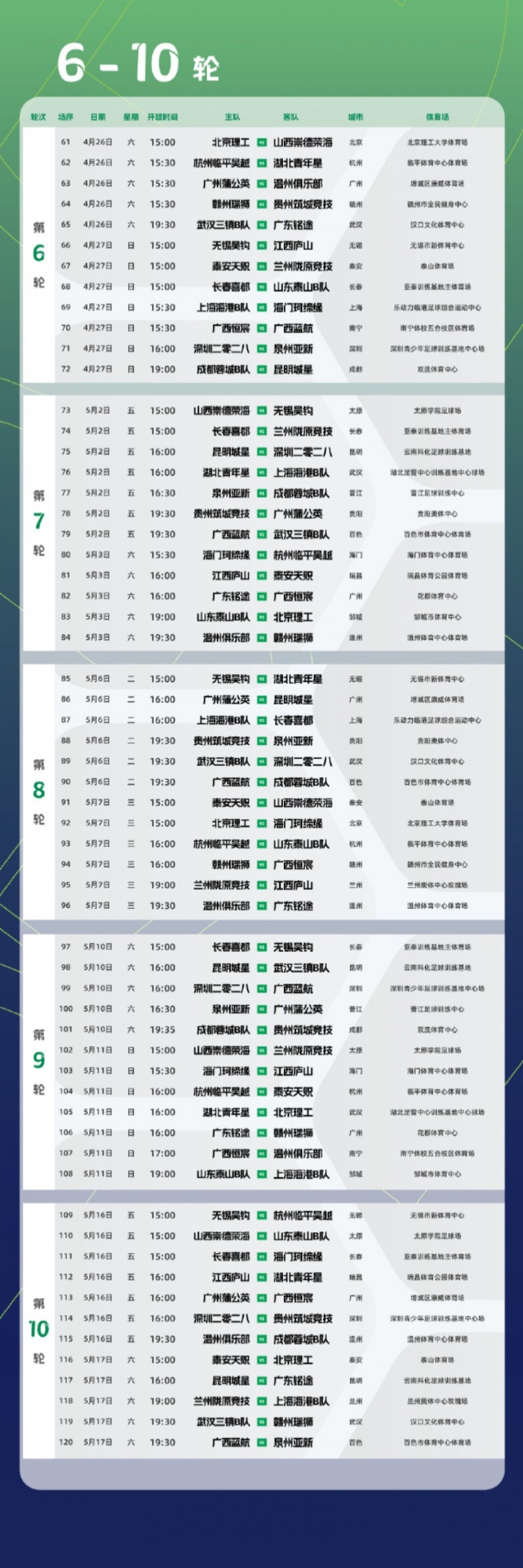 3月14日訊 中乙官方公布新賽季預(yù)賽階段賽程,共進(jìn)行22輪264場比賽。