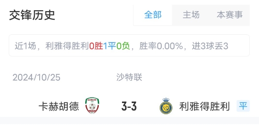 目前利雅得勝利取得了14勝6平4負的成績,積48分,暫居聯(lián)賽第4??ê蘸氯〉昧?勝4平11負成績,積31分,暫居聯(lián)賽第10。