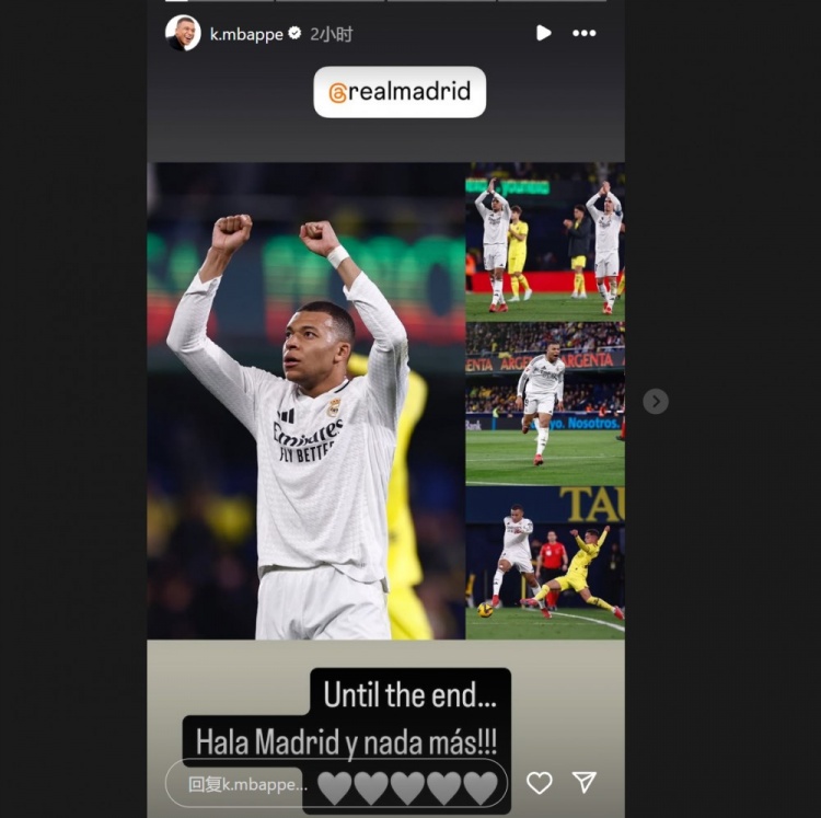 姆巴佩也在賽后通過社媒曬出自己的比賽照,并配文:“戰(zhàn)斗到最后一刻…馬德里前進(jìn),無需多言?。。 ?/p>