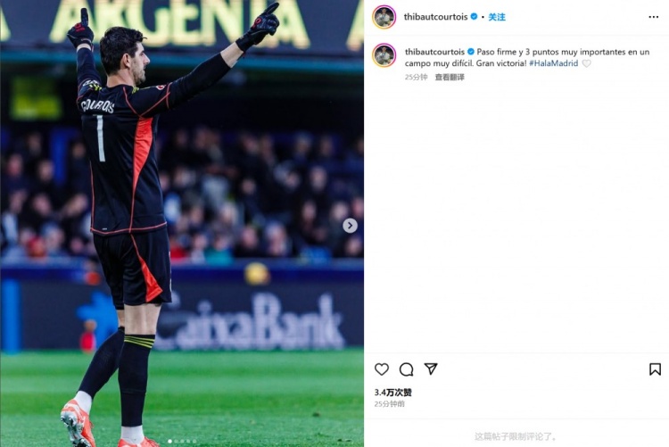他也在賽后通過(guò)社媒曬出比賽照,并配文:“在一個(gè)非常艱難的客場(chǎng)向前邁出堅(jiān)定一步并取得3分,很棒的勝利!#馬德里前進(jìn)????”