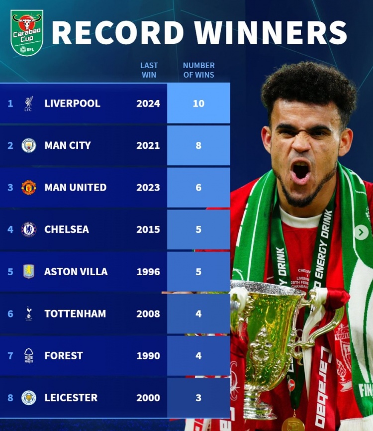 3月16日訊 利物浦即將迎來同紐卡的聯(lián)賽杯決賽,官方數(shù)據(jù)統(tǒng)計(jì)顯示總計(jì)有23支不同的俱樂部在迄今為止舉行的61屆聯(lián)賽杯決賽中奪得冠軍,紅軍是該項(xiàng)賽事奪冠次數(shù)最多的球隊(duì)。