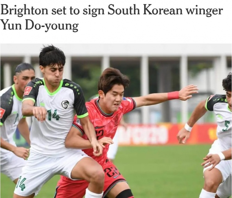 3月16日訊 The Athletic報(bào)道,布萊頓即將簽下18歲韓國邊鋒尹棹泳。