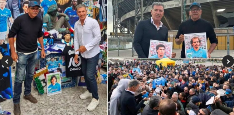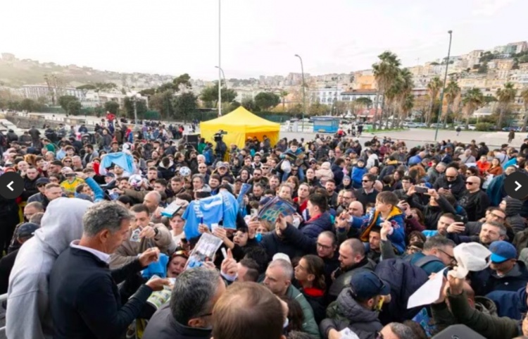 這兩位那不勒斯傳奇也拿著自己球員時(shí)代的照片來(lái)到馬拉多納球場(chǎng)外,他們被球迷包圍并為球迷簽名。