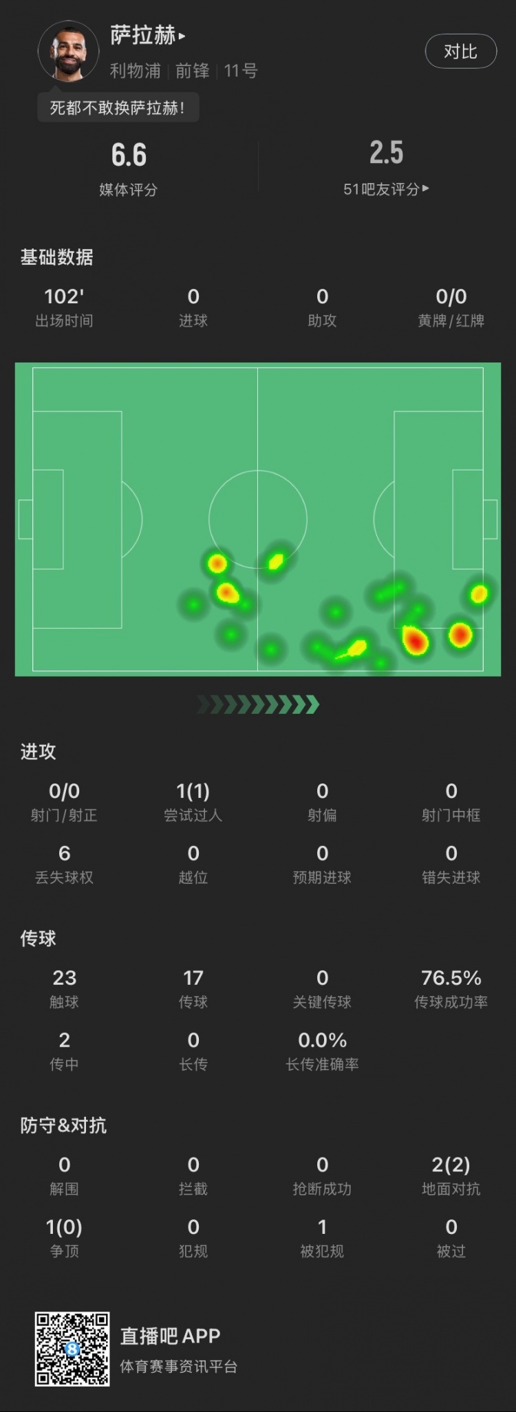 3月17日訊 本賽季聯(lián)賽杯決賽落寞,利物浦1-2不敵紐卡無緣奪冠。本場比賽,薩拉赫發(fā)揮欠佳,多項(xiàng)數(shù)據(jù)掛零,僅獲評(píng)6.6分。
