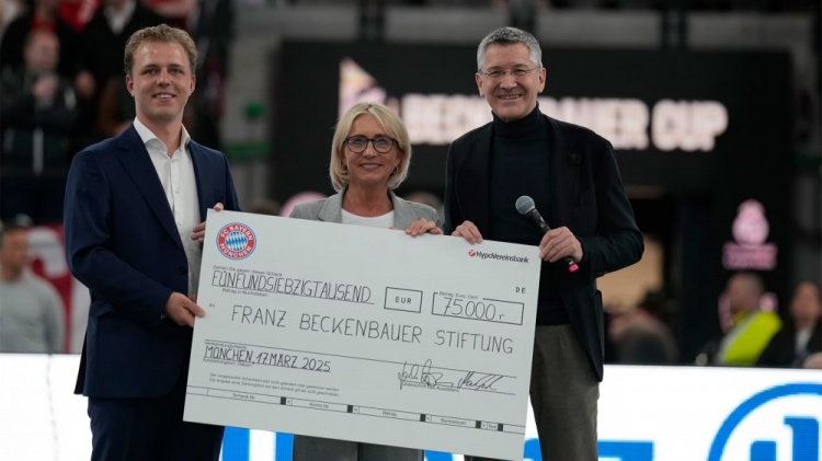 此外,本屆賽事總計(jì)獲得了7.5萬歐元的收益,這筆收入捐獻(xiàn)給弗朗茨-貝肯鮑爾基金會(huì),拜仁主席海納作為代表將支票交給貝皇的家人海蒂-貝肯鮑爾和約爾-貝肯鮑爾。