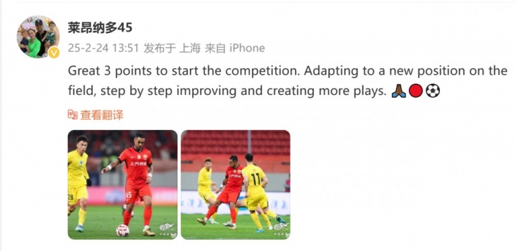 萊昂納多賽后更新社媒:拿下三分開(kāi)啟新賽季,我正在適應(yīng)新的場(chǎng)上位置,得逐步提升表現(xiàn),創(chuàng)造更多出場(chǎng)機(jī)會(huì)。
