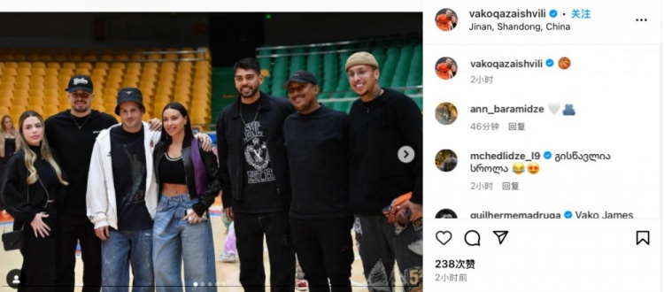 昨日山東泰山外援卡扎伊什維利更新社媒,曬出自己和家人朋友在濟南現(xiàn)場觀看CBA常規(guī)賽山東vs廣州的比賽,賽前他還秀了一把籃球技巧,罰籃空心入網(wǎng)。