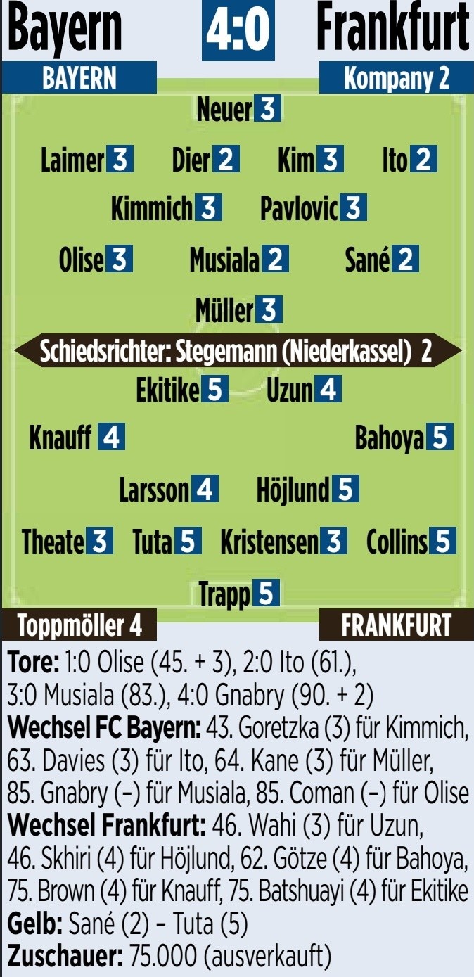 圖片報(bào)評分:穆西亞拉、薩內(nèi)、伊藤洋輝、戴爾2分并列最佳