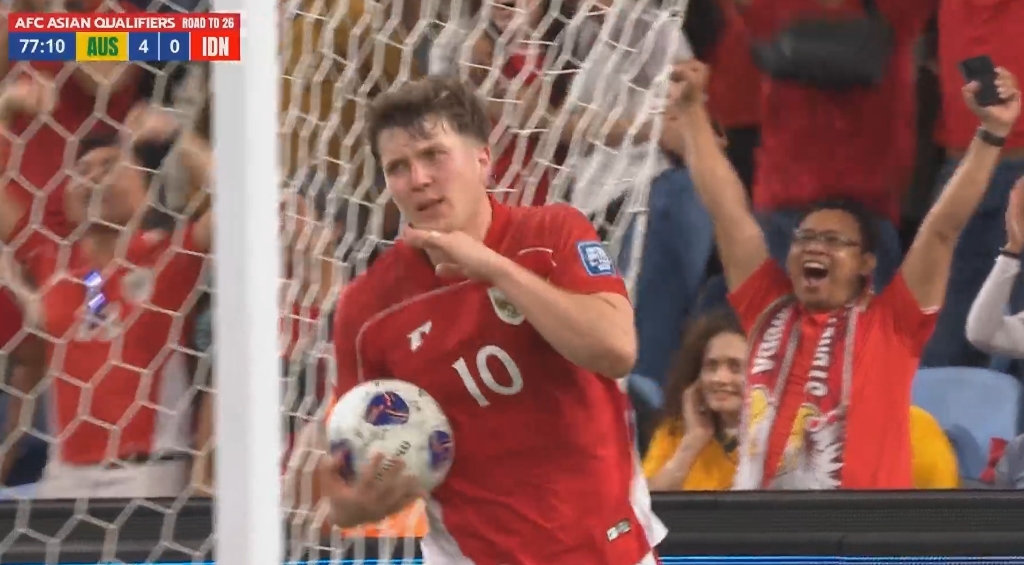 03月20日訊 世預(yù)賽亞洲區(qū)第三階段C組第7輪,澳大利亞vs印尼,比賽第78分鐘,澳大利亞后防失誤,印尼歸化前鋒羅梅尼進(jìn)球,打入印尼國(guó)家隊(duì)生涯處子球,并做“割喉”慶祝,印尼仍1-4落后,克魯伊維特場(chǎng)邊不停鼓掌。