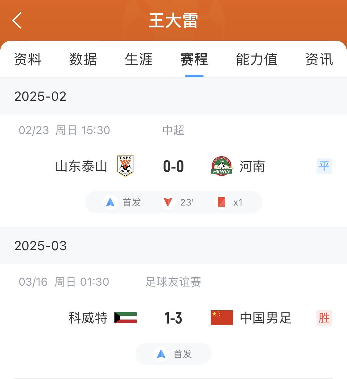 但2025賽季中超首輪泰山vs河南,王大雷出擊踢倒對(duì)手染紅,2月23日之后未參加正式比賽。而顏駿凌出戰(zhàn)了中超+亞冠的所有比賽。