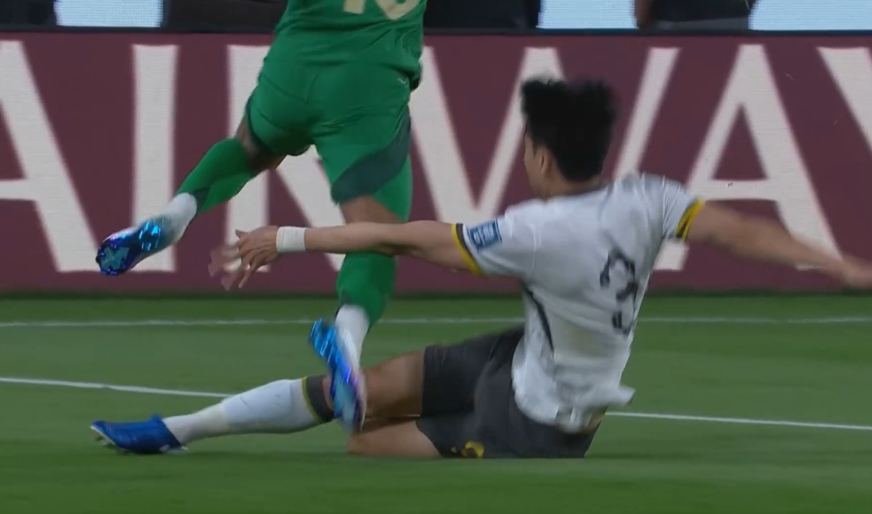 03月21日訊 國足vs沙特第14分鐘,高準(zhǔn)翼邊路鏟倒對手,裁判吹罰犯規(guī)不過沒有出牌。
