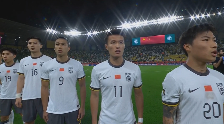 大戰(zhàn)一觸即發(fā)!賽前國歌儀式,國足首發(fā)11人高唱國歌