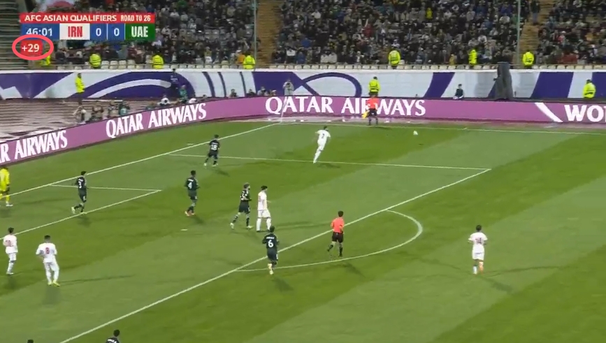 03月21日訊 伊朗vs阿聯(lián)酋比賽恢復(fù)進(jìn)行!上半場(chǎng)比賽補(bǔ)時(shí)29分鐘!
