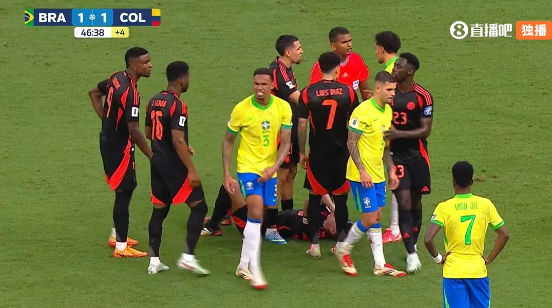 半場(chǎng)-拉菲尼亞點(diǎn)射維尼修斯造點(diǎn)迪亞斯扳平 巴西1-1哥倫比亞